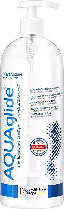 JOYDIVISION AQUAGLIDE giver en meget god langvarig smøring, hvilket gør den velegnet til både anal anvendelse og sexlegetøj. Den er dog ikke velegnet til dem, der foretrækker silikonebaserede produkter.