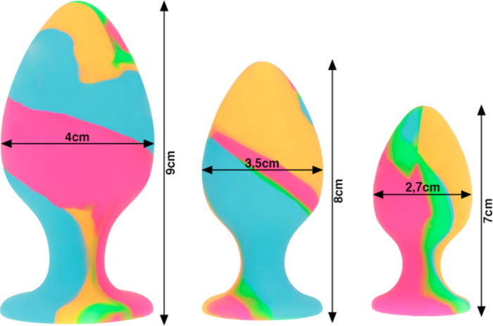 Oplev gradvis stimulering med INTENSE Analplug Sæt, designet til at forkæle din eventyrlystne side. Fremstillet af blød silikone, disse plugs har et karakteristisk tie-dye design og en alsidig sugekopbund for ekstra sjov. De varierer i diameter fra 2,7 cm til 4 cm, så de egner sig både til begyndere og dem med mere erfaring inden for anal leg.