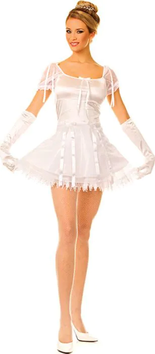 Dette ballerina kostume fra Music Legs er et enkelt og flatterende outfit til rollespil, fester eller fotoshoots. Lavet af skinnende satin med tulle og blonder, med matchende satin handsker.