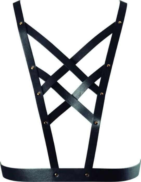 Denne krydssele fra Bijoux Maze giver et trendy look til din garderobe med et bondage-inspireret design. Justerbar og vegansk, til kreative outfits.