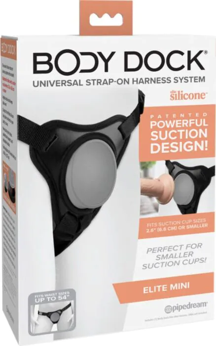 Oplev en ny dimension af strap-on leg med Body Dock Elite Mini Sele. Designet til mindre sugekopper og tilbyder en komfortabel, justerbar pasform.