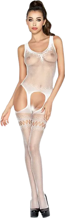 Forfør dine sanser med denne fiskenet bodystocking. Den kombinerer sensualitet med elegance, og har en dristig åbning i skridtet samt smuk broderi.