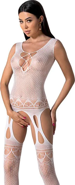 Føl dig selvsikker og lokkende i bodystocking fra Passion Woman, designet til at omfavne dine kurver i én størrelse. Fremstillet af en blanding af 80% polyamid og 20% elastan, tilbyder den en komfortabel pasform med et sensuelt mesh mønster, der frister. De intrikate blonde- og gennemsigtige detaljer fremhæver din silhuet og gør den til et glimrende valg til særlige anledninger eller private stunder.
