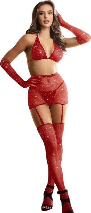 Opgrader dit look med SUBBLIME bodystocking, designet til at fremhæve dine kurver i et iøjnefaldende fiskenetmønster prydet med diamanter. Fremstillet af 88% nylon og 12% spandex, giver den både komfort og en flatterende pasform til forskellige kropstyper.