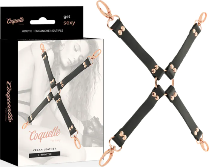 Forstærk din bondageleg med Coquette Fantasy Hog Tie, lavet af veganlæder. til sammenkobling med håndleds- og ankleremmes, vil det forbedre dine underkastelsesoplevelser.