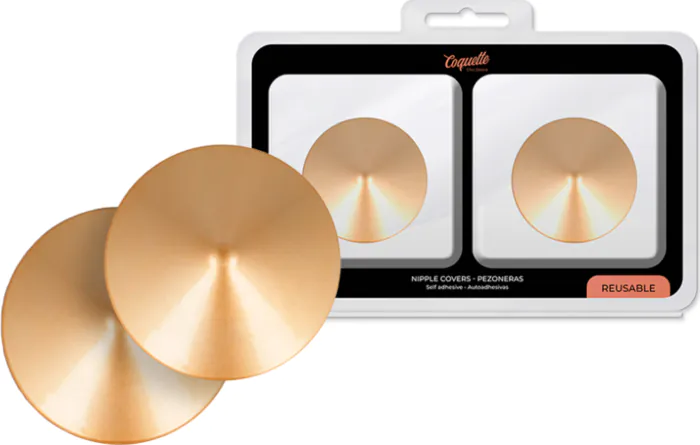 Disse dristige brystvorte dækner i metallisk design fra Coquette Chic Desire er helt uimodståelige. Den selvklæbende konstruktion sikrer nem påføring og aftagning, så du hurtigt kan skifte dit look. Fremstillet af holdbart metal, skaber disse dækner en slående effekt og kan genbruges for din bekvemmelighed.