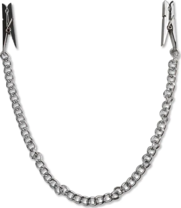 Forvandl dine intime øjeblikke med disse slående brystvorte klemmer fra Fetish Fantasy Series. Det sølvfarvede kædedesign tilføjer en dristig nuance, der fanger opmærksomheden.