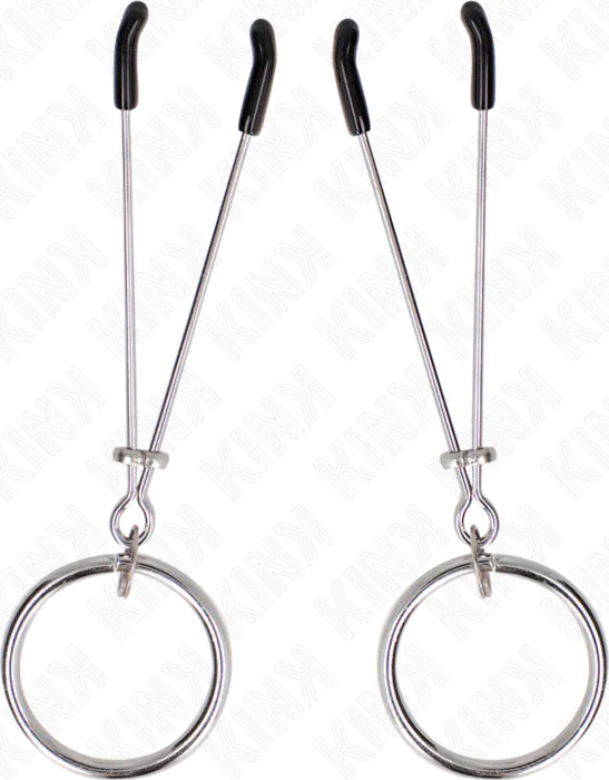 KINK Brystvorte Klemmer med justerbare O-ringe giver dig mulighed for at kontrollere trykket og tilpasse oplevelsen. Lavet af holdbart metal, giver disse klemmer et fast greb og et elegant design, der passer til enhver BDSM-eventyr.
