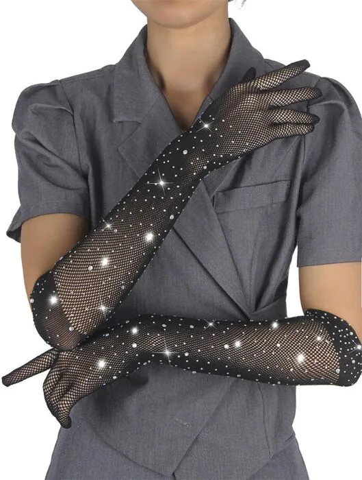 Disse charmerende handsker fra SUBBLIME er lavet af en luksuriøs blanding af 88% nylon og 12% spandex, hvilket giver en tætsiddende men behagelig pasform, der sikrer nem bevægelse. Den iøjnefaldende glitter finish og diamantapplikationer skaber en slående effekt, der fanger lyset smukt.