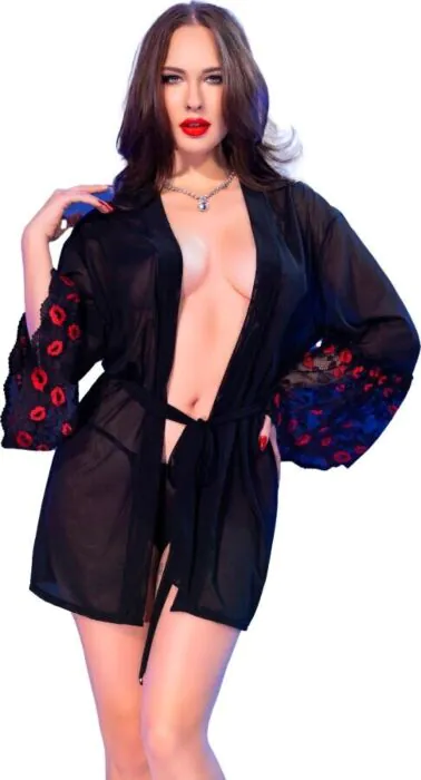 Fornem det bløde mesh, der kærtegner din hud med hver bevægelse. Chilirose CR 4882 babydoll har brede ærmer dekoreret med blonder broderet med røde kys, hvilket tilføjer et legende provokerende touch til din aften. Den justerbare talje sørger for en personlig pasform, der fremhæver din smukke silhuet.