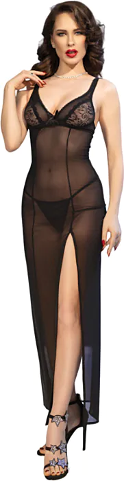 Få et elegant look med Chilirose CR 4723 lang babydoll, fremstillet af blødt, semi-gennemsigtigt blonde, der fremhæver dine kurver på en sofistikeret måde. til de særlige aftener.