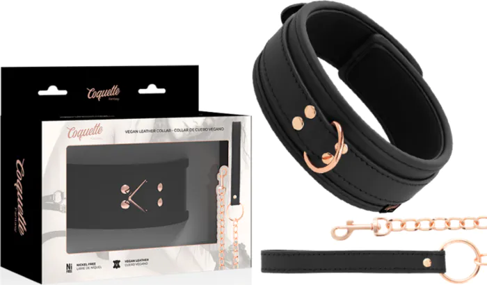 Forbedr din BDSM oplevelse med dette holdbare veganske læderhalsbånd fra Coquette Fantasy. Det nikkelfri metal kæde gør det velegnet til både erfarne og nysgerrige spillere.