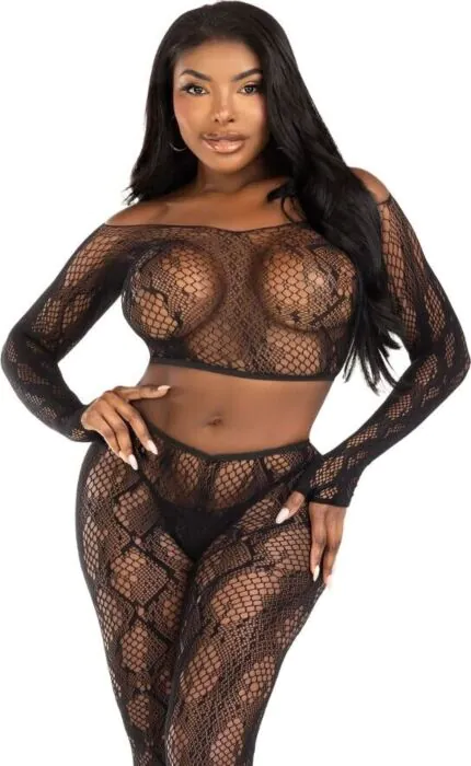 Crop Top & Strømper uden fødder Leg Avenue 89373 Slangeskindsdesign
