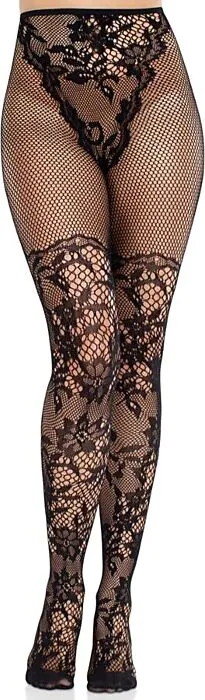 Forøg din benbeklædning med Dahlia Blonde Strømper fra Leg Avenue. Den intrikate blonder og fishnet-design tilføjer et sofistikeret touch til ethvert outfit.