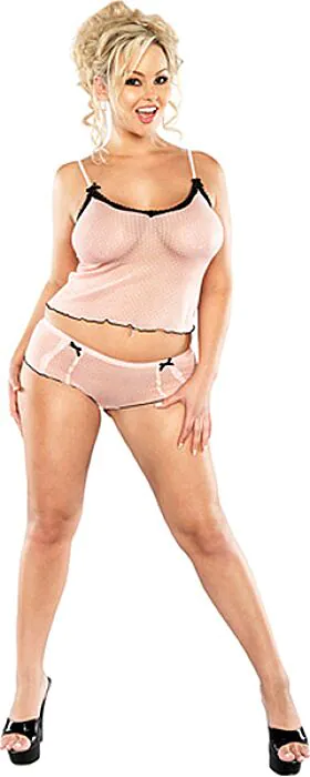 O - L CAMI SHORT fra Exposed består af en cami-top og matchende shorts i mesh-stil, her præsenteret i en XXL størrelse og lyserød farve. Meshen giver en åben og luftig fornemmelse med et semi-transparent udseende — tænkt let og komfortabelt fremfor støttende. Brug det til afslapning derhjemme eller romantiske aftener. Hvis du har brug for fast støtte, er dette ikke det rigtige valg for dig.