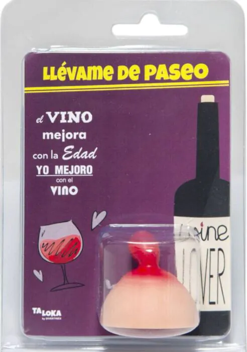 Placer propperne på din vinflaske for at holde den tæt lukket og tilføje et humoristisk præg. Den er til fester eller som en karakteristisk gave til venner, der sætter pris på en fræk sans for humor.