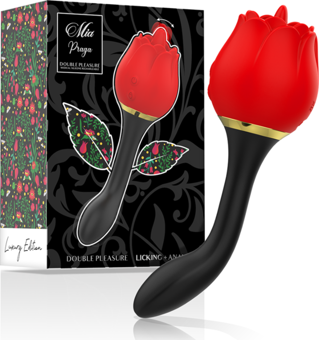 MIA PRAGA leverer en overbevisende dobbelt stimulationsoplevelse. De 10 vibrationsniveauer giver variation, men vær opmærksom på, at den er genopladelig og ikke batteridrevet.