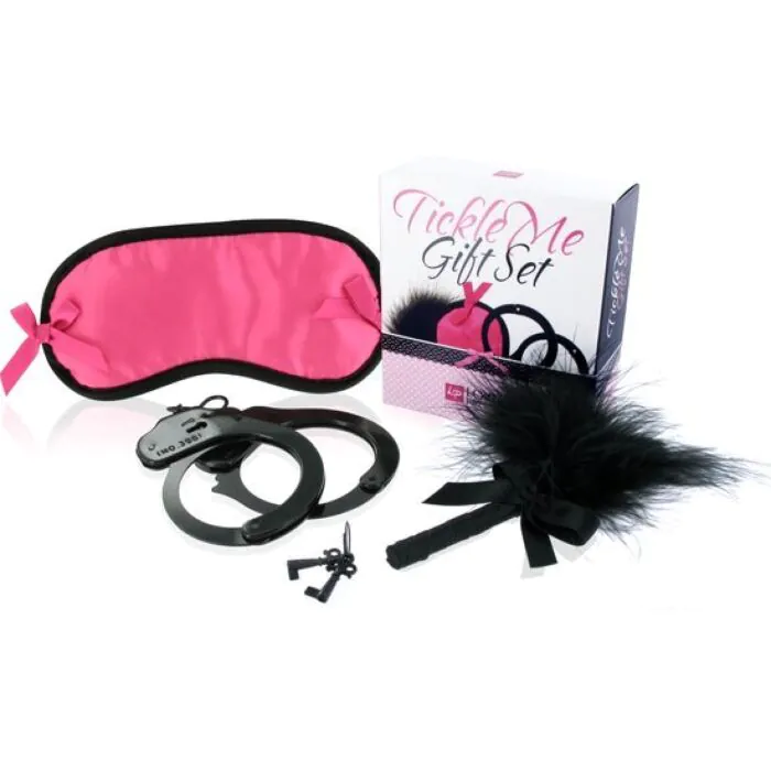 Bring legesyg spænding til dine intime stunder med denne fornøjelige gaveæske. Lover Tickle Me Sættet inkluderer fristende elementer: sorte metal håndjern for en anelse restriktion, en blød sort fjer til at pirre sanserne, og en farverig pink maske til at øge forventningen. Ideel til par, der ønsker at skabe glæde i deres romantiske møder.