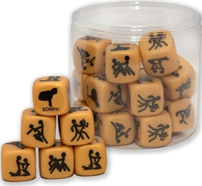 Tilføj et legende twist til din fest med disse gyldne terninger med unikke seksuelle stillinger. til fester og til at bryde isen.