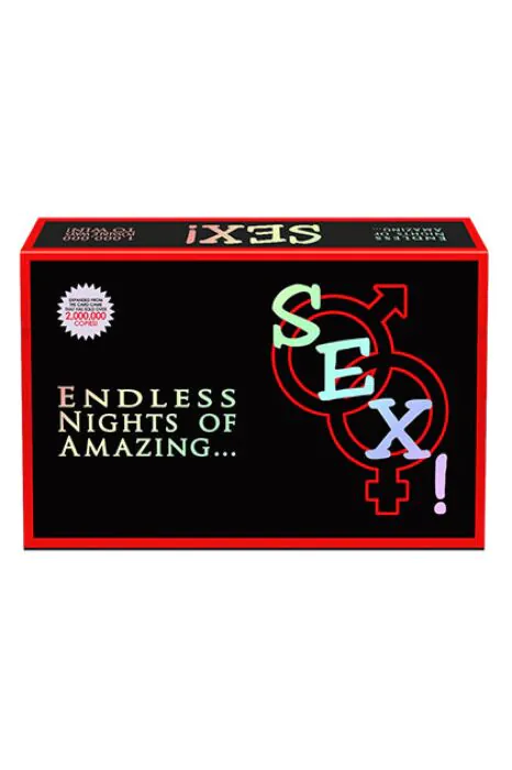 Samle din partner og kast terningerne for at bevæge jer rundt på brættet. Besvar spørgsmål fra 'Han Spørger' og 'Hun Spørger' kortene for at optjene Sex! kort. Gennemfør en fantasi med 6 stillinger for at vinde spillet. Ideelt for par, der ønsker at styrke deres forbindelse.