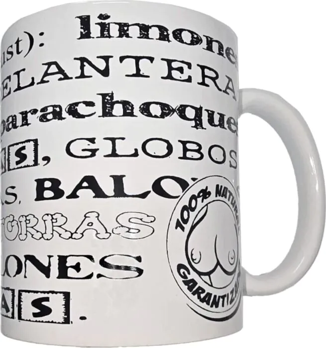 Start din dag med et frækt smil med denne keramiske kop, der har legesyge erotiske synonymer. God til gaven eller som sjovt supplement til din samling.