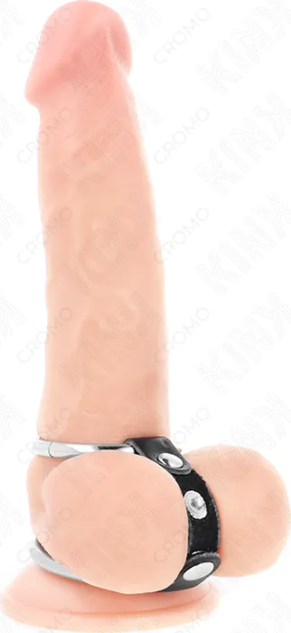KINK Dobbelt Metal Penisring med Læder Brystvorte Klemmer