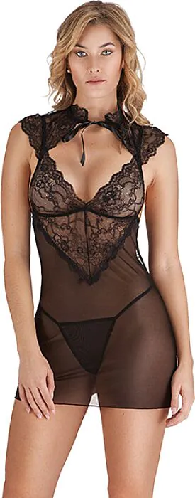 Denne forførende korte kjole fra S Pleasures kombinerer blomstret blonde med gennemsigtighed for et dragende look. Justerbare stropper sikrer en tilpasset pasform, og inkluderer en matchende trusse.