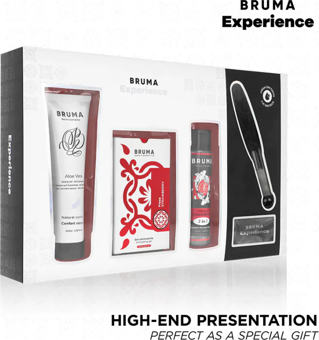Slip din sanselige side løs med BRUMA XPERIENCE Sweet Strawberry Temptation Kit. Inkluderer en stimulerende gel og forskellige tilbehør, designet til dem, der værdsætter langsomme og intense oplevelser.