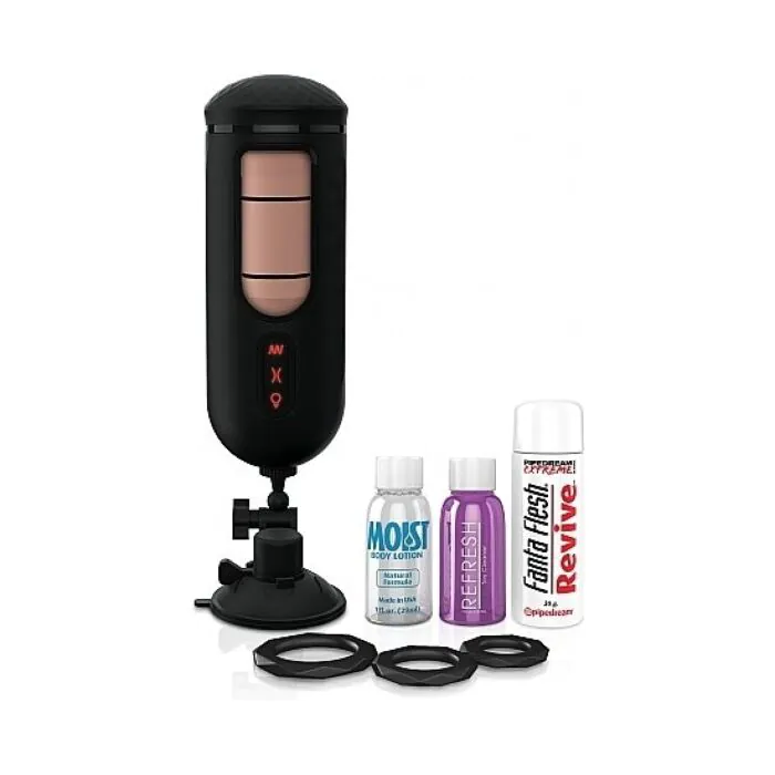 Sikre det justerbare låse-sugekop til en glat overflade for hænder-fri nydelse, eller hold den som ønsket. For bedst resultat, brug en vandbaseret glidecreme med Fanta Flesh-interiøret for en glidende oplevelse.
