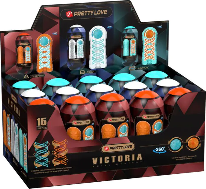 Med Pretty Love Victoria masturbatoren venter der en intens nydelse takket være den karakteristiske spiraltekstur, der forbedrer stimuleringen. Fremstillet af hudvenligt TPR, denne genanvendelige masturbator er designet til at give en tilfredsstillende oplevelse hver gang. Med 15 forskellige stykker inkluderet, som hver tilbyder forskellige farver og stilarter, henvender den sig til en bred vifte af præferencer.