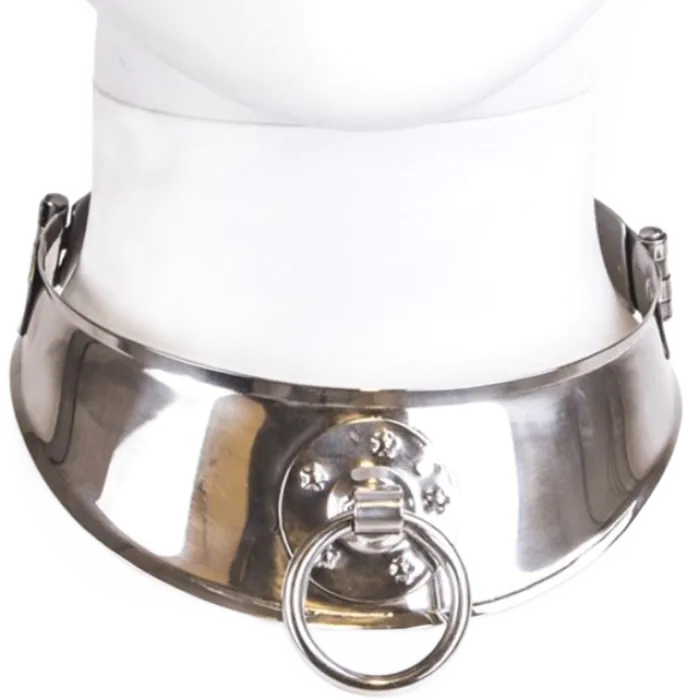 Dette halsbånd af rustfrit stål udstråler en stærk følelse af underkastelse og elegance. Med en glat finish er det både funktionelt og æstetisk tiltalende, hvilket muliggør forskellige lege scenarier.