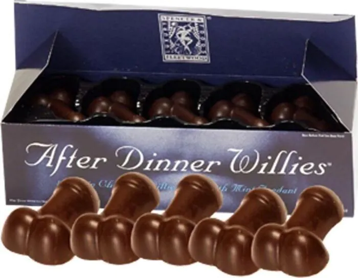 Disse mint-chokolade lækkerier vil helt sikkert vække glæde til enhver anledning. Hver pakke indeholder 8 chokolade penisser, som er til at tilføje et frækt, men sjovt element til fester.