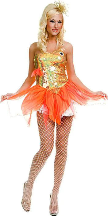 Et to-delt mermaid kostume fra Musikben med en glitrende paillet-top og en let blonde-nederdel i orange. Størrelse S/M passer til små til mellemstore kroppe og er ideelt til temafester, udklædning eller rollespil. Vælg dette, hvis du ønsker et iøjnefaldende og nemt at style kostume; hvis du har brug for slidstærkt eller svømmeklart materiale, skal du kigge andre steder.