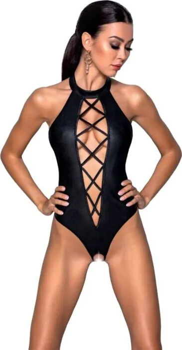 Nancy Body Teddy fra Passion forener en dristig dyb udskæring med blødt læder for en sensuel og komfortabel pasform. Designet til moderne kvinder, der ønsker at tilføre elegance og selvsikkerhed til deres intime garderobe.