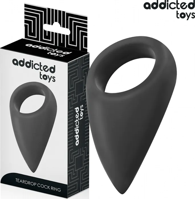 Addicted Toys tåreformede penisring forbedrer din seksuelle præstation. Designet til komfort og stabilitet, sikrer den en sikker pasform, der forlænger erektionen og øger stimulationen.