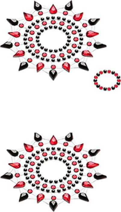 Dette er et dekorativt brystjuvelsæt fra Petits Joujoux, designet til at tilføje glans til et outfit eller en optræden. Sættet består af små krystaller fastgjort til klæbepunkter, og inkluderer mere end 300 skinnende sten for en strålende effekt. Du kan bære dem diskret under tøjet eller vise dem frem til en striptease eller på scenen — de er skabt til at være komfortable i kortere til moderate perioder.