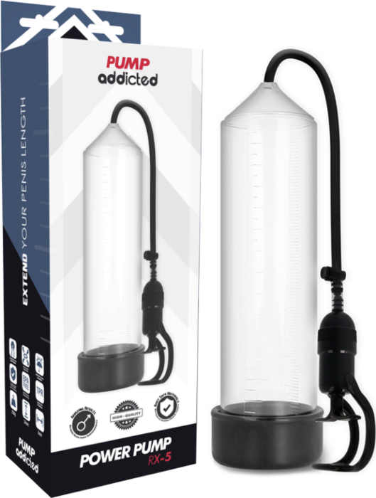 Få forstærket størrelse og præstation med Pump Addicted RX5. Designet til mænd, der ønsker at forbedre deres erektion styrke og komfort, anvender denne pumpe et vakuumsystem til effektive resultater.