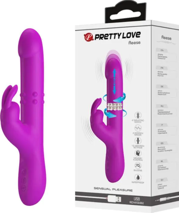 Oplev samtidig stimulering med Pretty Love Reese Rabbit Vibrator. Designet til dig, der søger intens klitoris- og G-punkt stimulation, tilbyder denne elegante enhed flere tilstande for personlig nydelse.