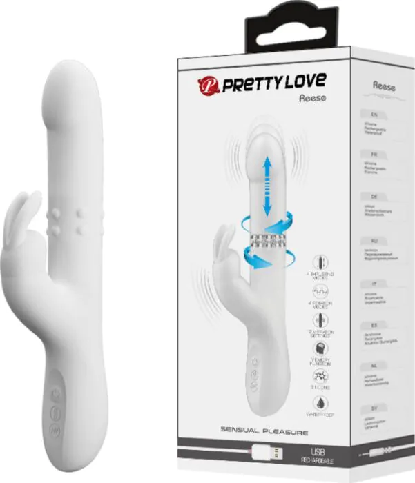 Oplev kraftfuld dobbelt stimulation med Pretty Love Reese rabbit vibrator. Denne alsidige legetøj tilbyder 12 vibrationsindstillinger og roterende funktion for intens glæde.
