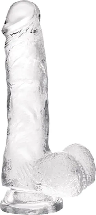 Oplev realistiske sensationer med denne gennemsigtige dildo, der har en stærk sugekop og struktureret design. til solo leg eller brug med sele.