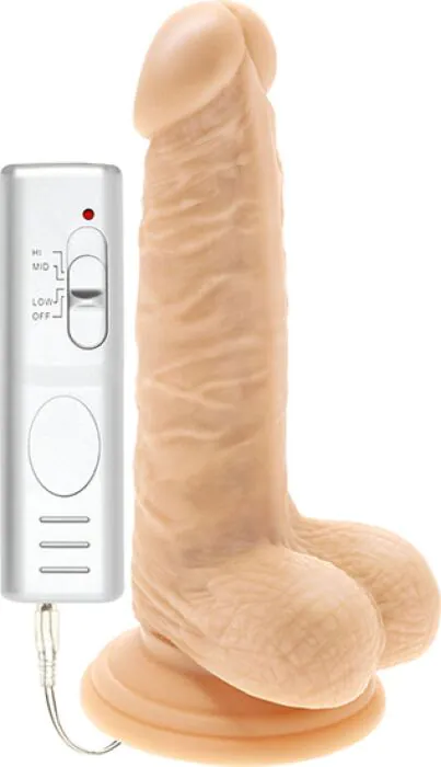 En realistisk, åreformet vibrator med en robust sugekop og ledet fjernbetjening — lavet i fleksibel, men fast PVC. Med 13 cm indsætbar længde og tre vibrationsindstillinger, passer den til dem, der ønsker en betydelig, anatomisk formet legetøj, der virker selvstændigt eller med en sele.