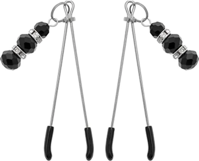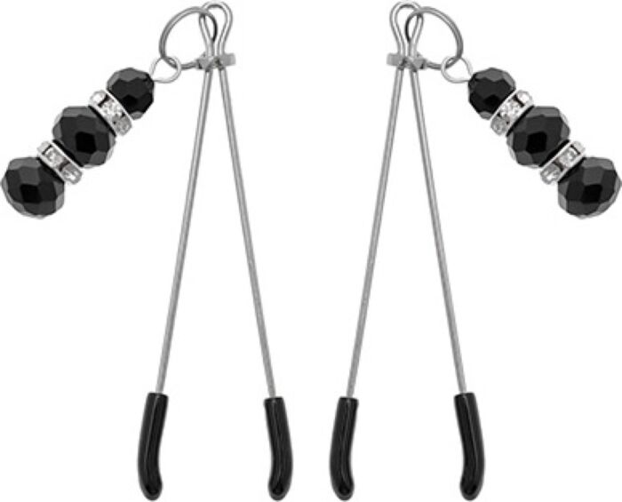 Disse justerbare brystvorte klemmer er lavet af metal med PVC polstring. Hvis du ønsker kontrolleret, gradvis brystvorte stimulering frem for en ensartet klemning, giver NEKO dig mulighed for at indstille trykket til et komfortabelt niveau og tilføje vægt og bevægelse med de små sorte perler, der hænger fra hver klemme. De polstrede kontaktpunkter reducerer skarpe klemninger og gør dem mere skånsomme mod følsom hud, mens metalrammen sikrer et pålideligt greb.