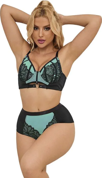 SUBBLIME Green Lace og Mesh Lingeri Sæt fremhæver din figur og tilbyder komfort med sine fleksible materialer. Velegnet til kvinder, der ønsker at kombinere elegance med sensualitet.