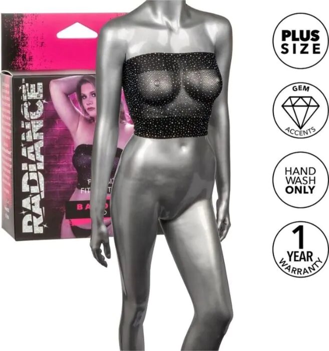 Opgrader din garderobe med Radiance Bandeau Top fra CalExotics. Denne plus størrelse top er designet til komfort og stil med rhinsten detaljer, der tilføjer et strejf af glamour til enhver påklædning.
