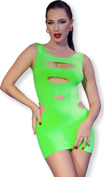 Denne kjole er ideel til intime aftener eller som et dristigt hverdagslook. Kombiner den med dine yndlingshæle for et iøjnefaldende outfit. Brug en vandbaseret glidecreme, når du tager den på for en glat pasform.