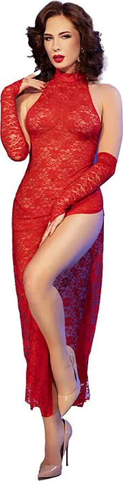 Denne sexede blondekjole fra Chilirose kombinerer sensualitet med elegance. Det off-shoulder design og de medfølgende handsker gør den til den, der ønsker at gøre et indtryk.