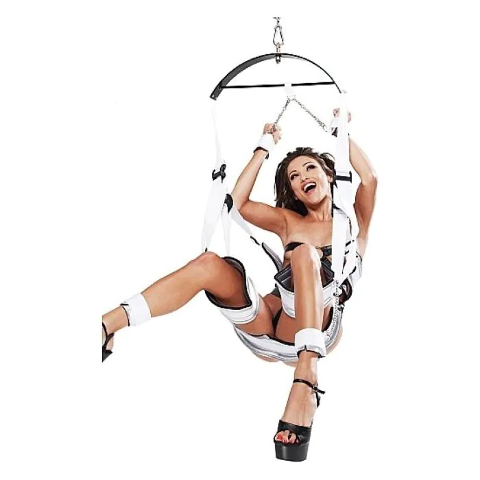 FETISH FANTASY SERIES Bondage Swing tilbyder en spændende måde at udforske nye positioner uden fysisk belastning. Det er designet med justerbare stropper til støtte af fødder, ankler og håndled, og lavet af holdbart nylon for maksimal komfort. Uanset om du ønsker at lege alene eller sammen med en partner, er denne swing klar til at tage dig med på eventyr.