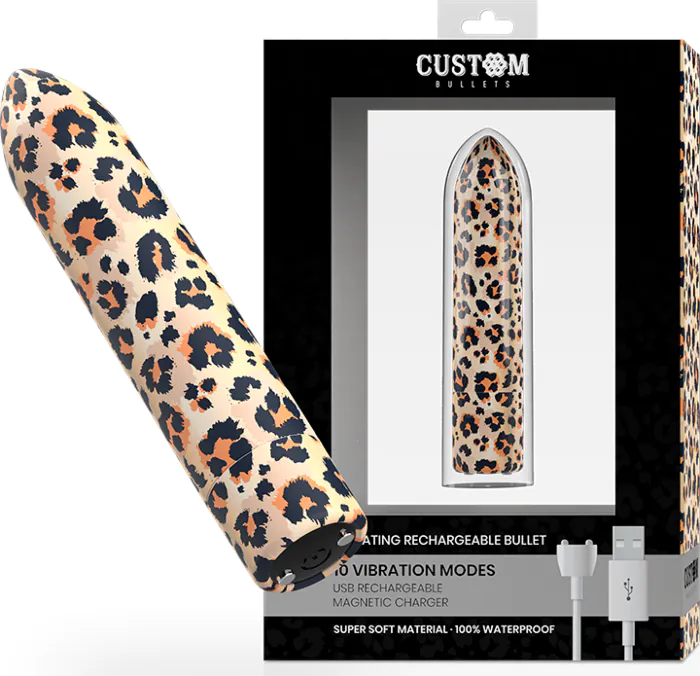 Med 10 kraftige vibrationsniveauer tilbyder den vibrerende læbepudser Custom Bullets Leopard en blød silikoneoverflade og et kompakt design, hvilket gør den til den ideelle rejseledsager til spontan fornøjelse.